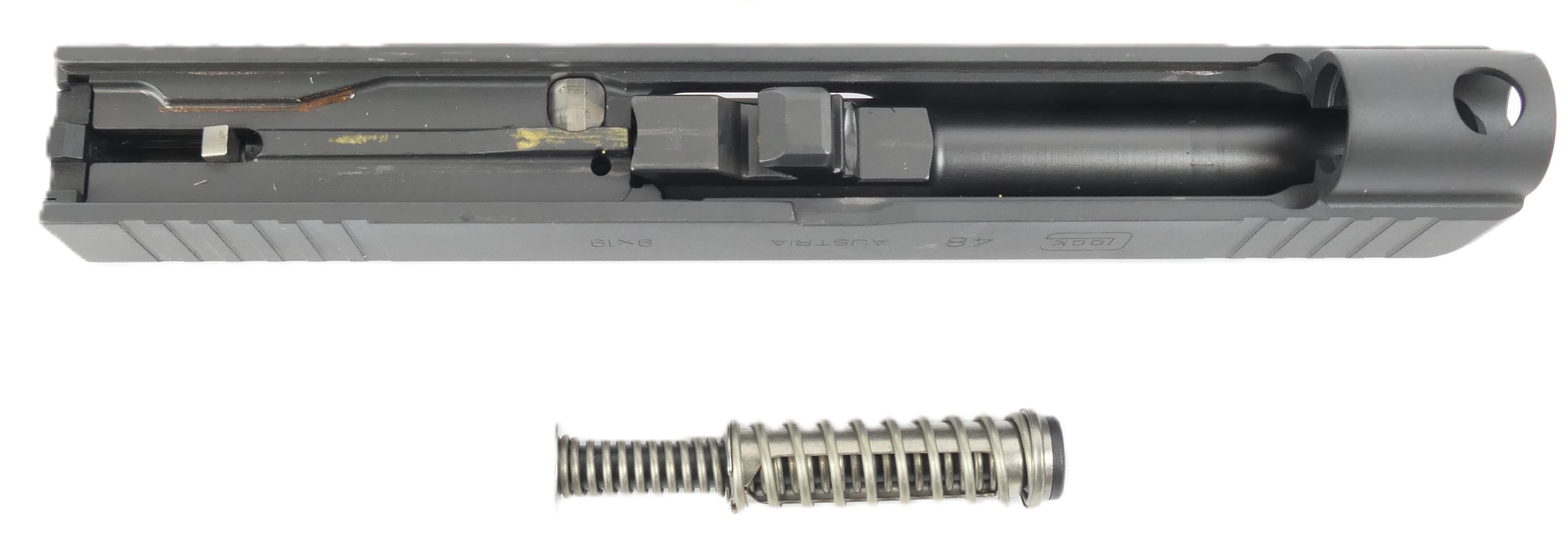 comme tous les Glock, protection exceptionnelle contre la corrosion (+ de 800 heures en brouillard salin) et contre l'usure (dureté superficielle du canon et de la culasse supérieure au saphir industriel).