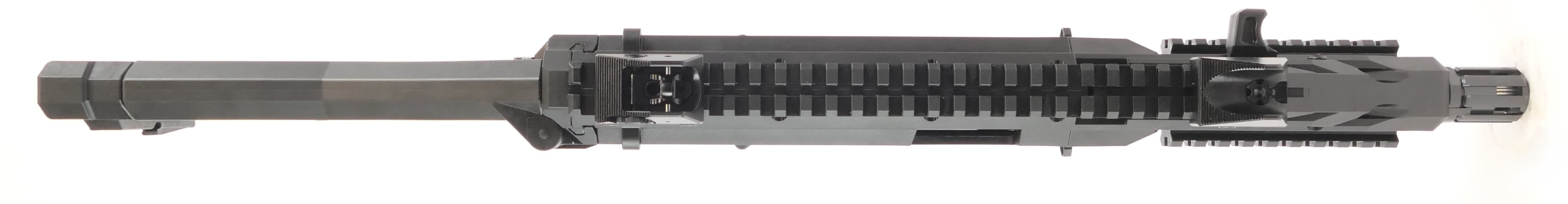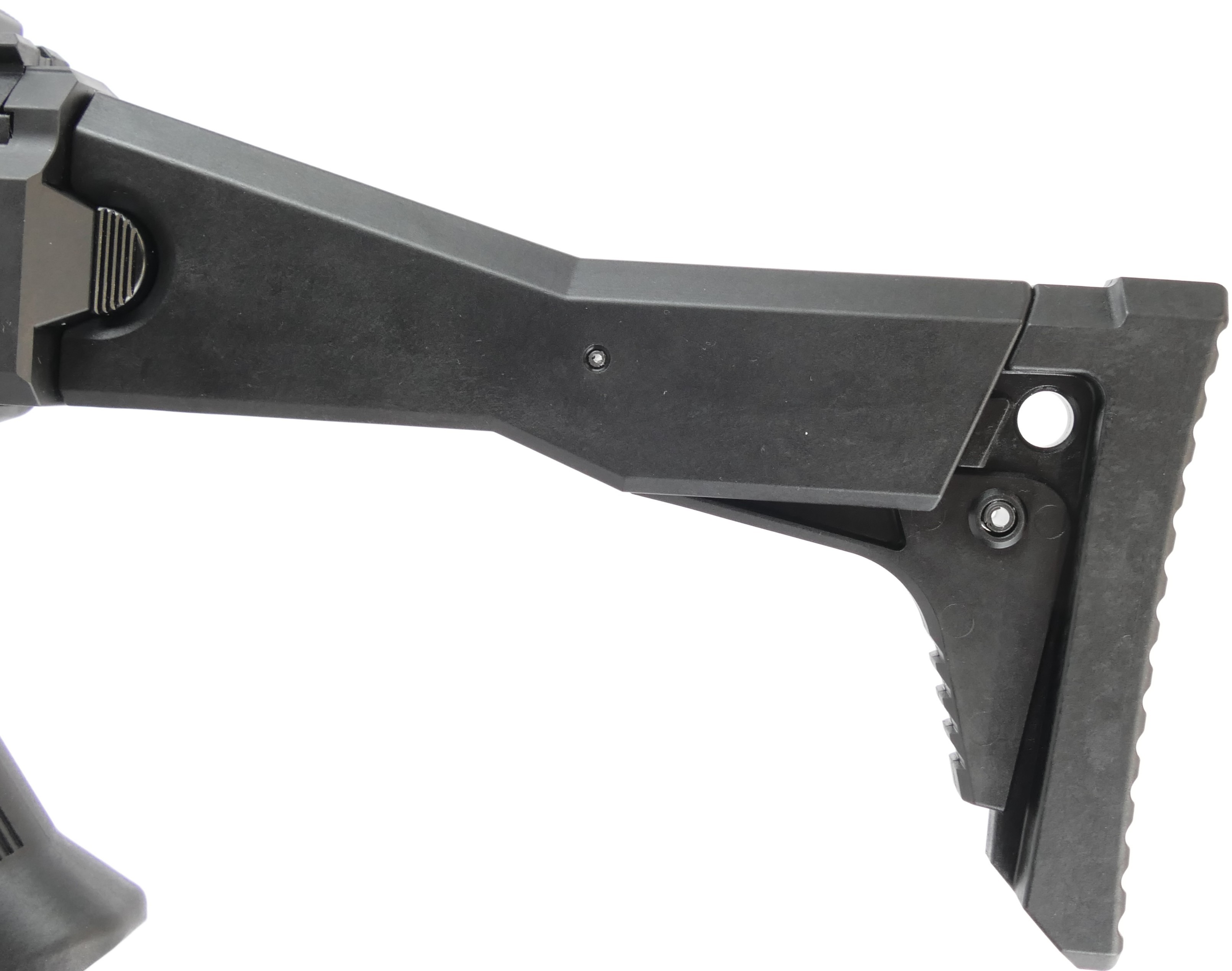 L’arme nous offre une plateforme courte malgré le faite que la crosse soit fixe, mais néanmoins modulable : on va retrouver un rail picatinny parcourant tous la partie supérieure de l’arme ainsi que des rails sur le coté et le dessous du garde-main. La crosse est réglable sur 3 positions en longueur.